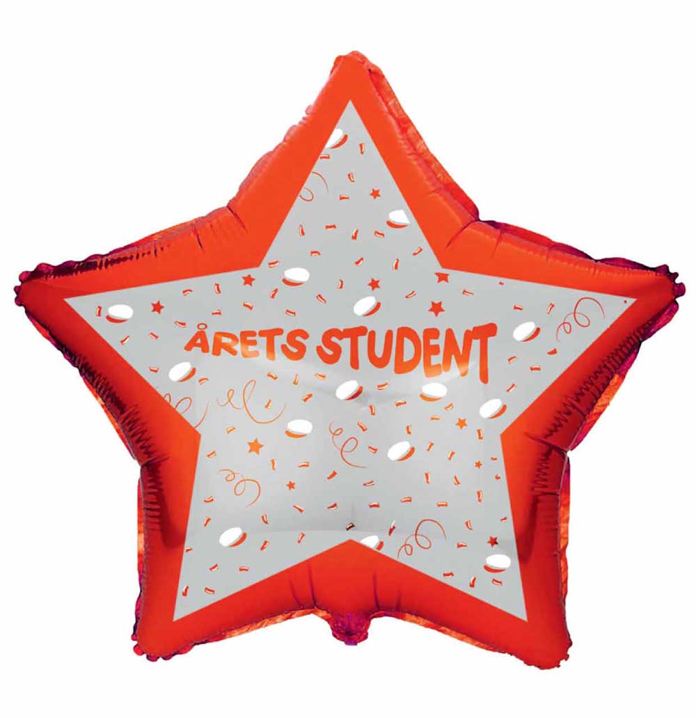 – Udsmykket med studenterhuer og teksten “Årets Student”